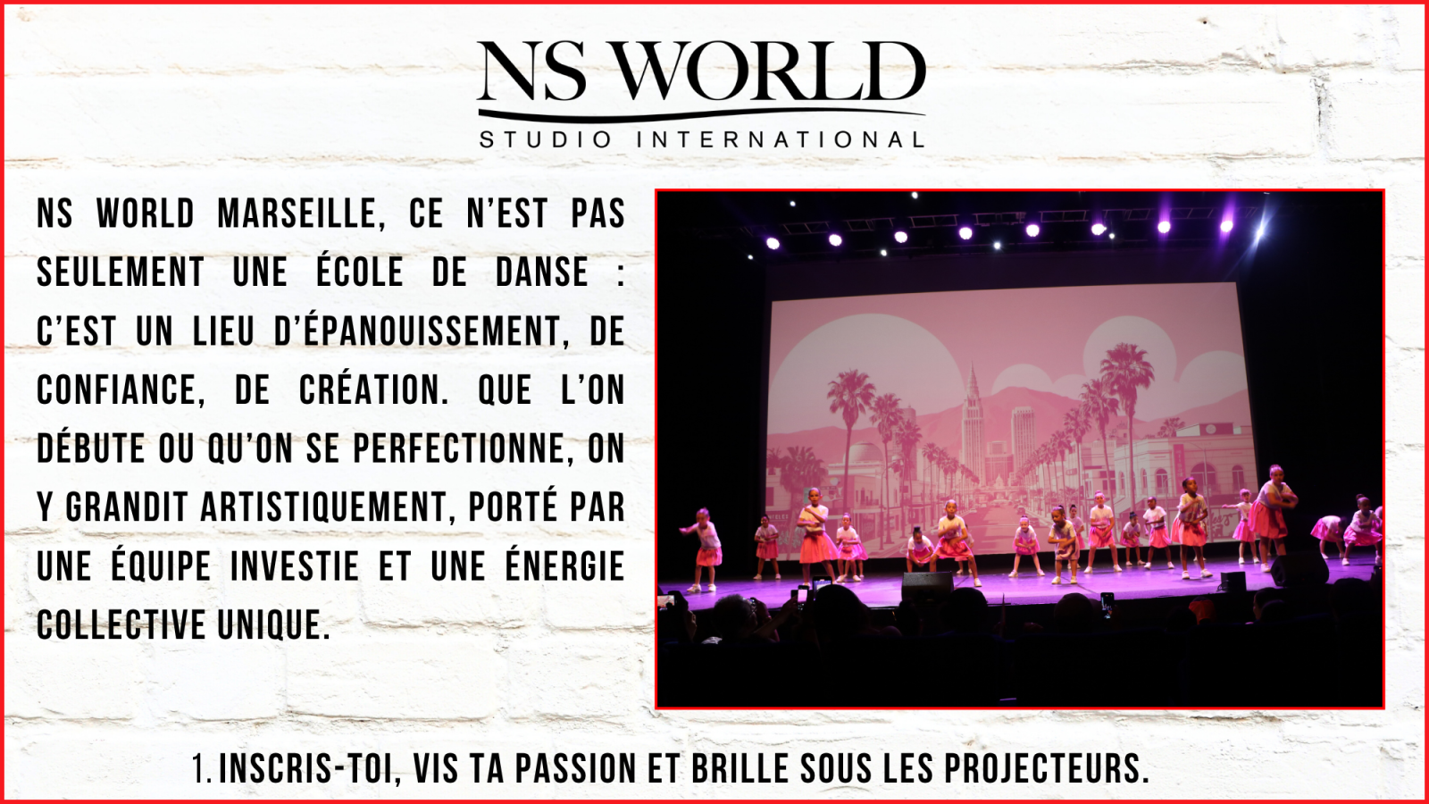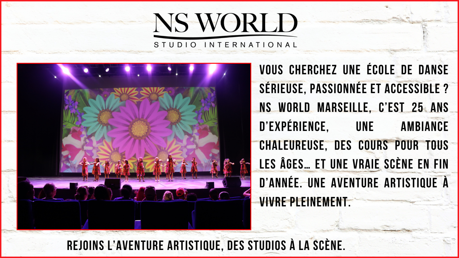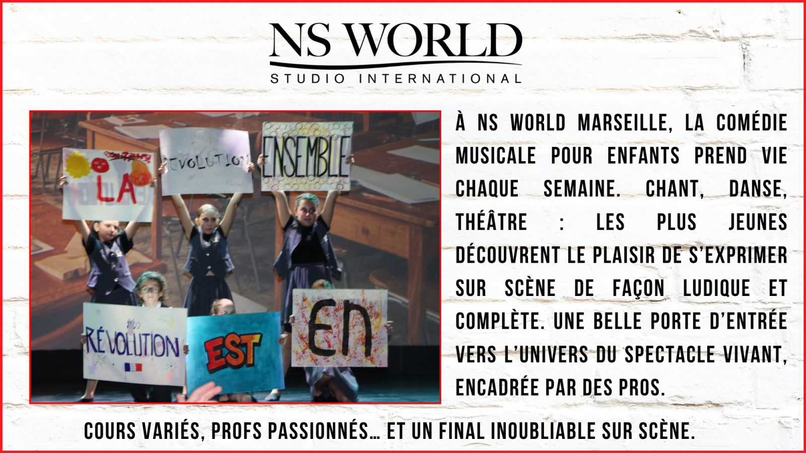 Danser, chanter, jouer, briller sur scène… C’est tout cela que propose NS World Marseille.